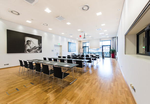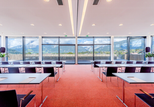 Wer den Congress Saalfelden betritt, ist schon mitten im Geschehen – oder besser gesagt: mitten in der Veranstaltungsfläche! Denn unsere Räumlichkeiten im Erdgeschoß bieten gleich bei Betreten ein freundliches Ambiente für Ausstellungen, Empfänge und viele andere Events. Besonders als Pausen- und Networking-Bereich punkten die lichtdurchfluteten Räume im Erdgeschoß.